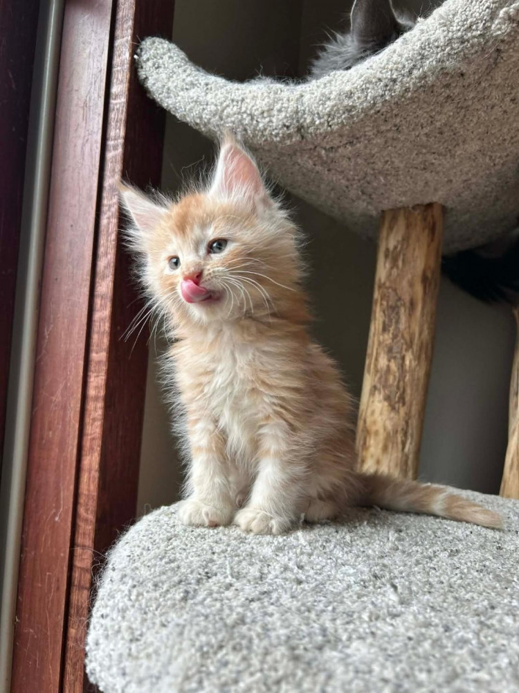 This boy is so sweet and silly. Everything a red boy should be! He love his canned food and loves to play, play, play. He is ready to leave at March 2026. Message us for details on this beautiful cotton candy boy!